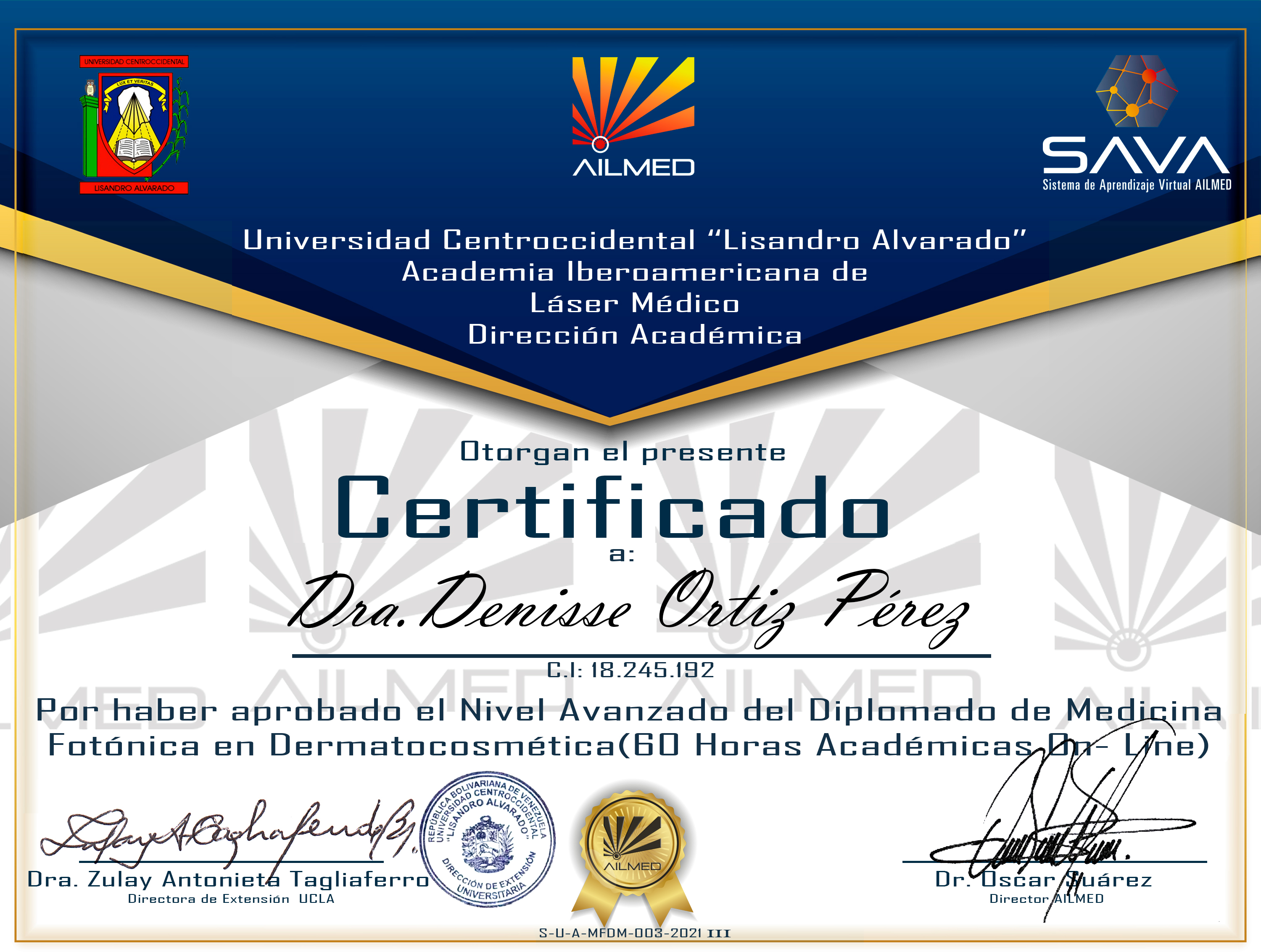 Cohorte VIII- Nivel Avanzado- Diplomado de Medicina Fotónica en Dermatocosmética - Dra.Marielidany Paola Rosales Urdaneta