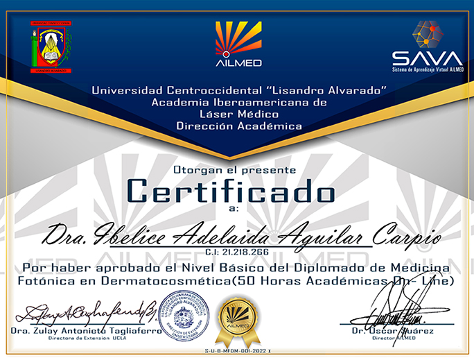 Cohorte IX- Nivel Básico- Diplomado de Medicina Fotónica en Dermatocosmética - Dra.Ibelice Adelaida Aguilar Carpio