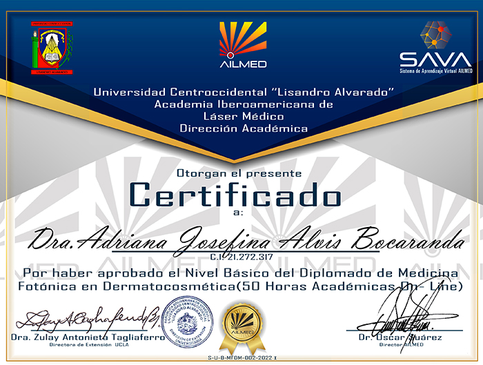 Cohorte IX- Nivel Básico- Diplomado de Medicina Fotónica en Dermatocosmética - Dra.Adriana Josefina Alvis Bocaranda