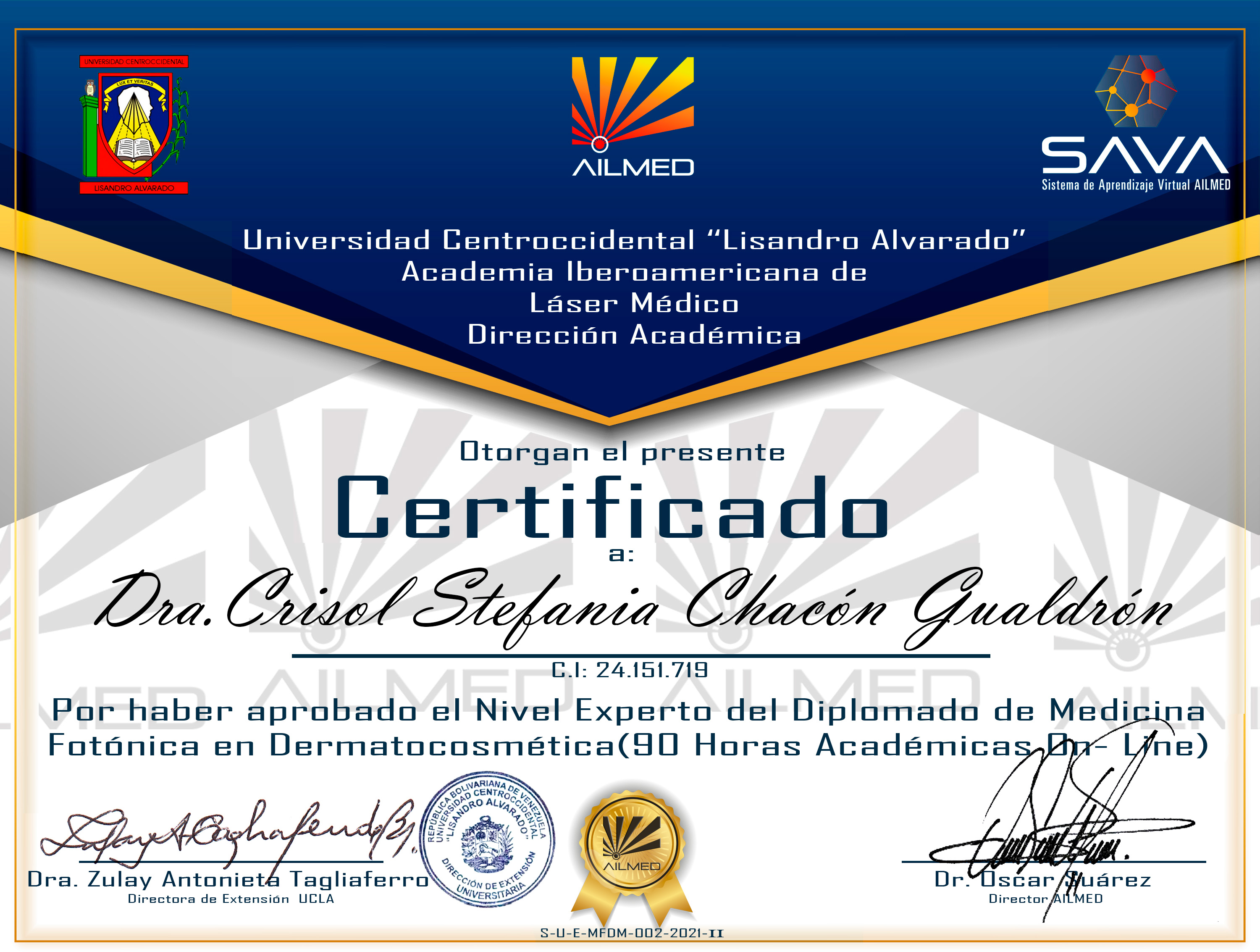 Cohorte VIII- Nivel Avanzado- Diplomado de Medicina Fotónica en Dermatocosmética - Dra.Marielidany Paola Rosales Urdaneta