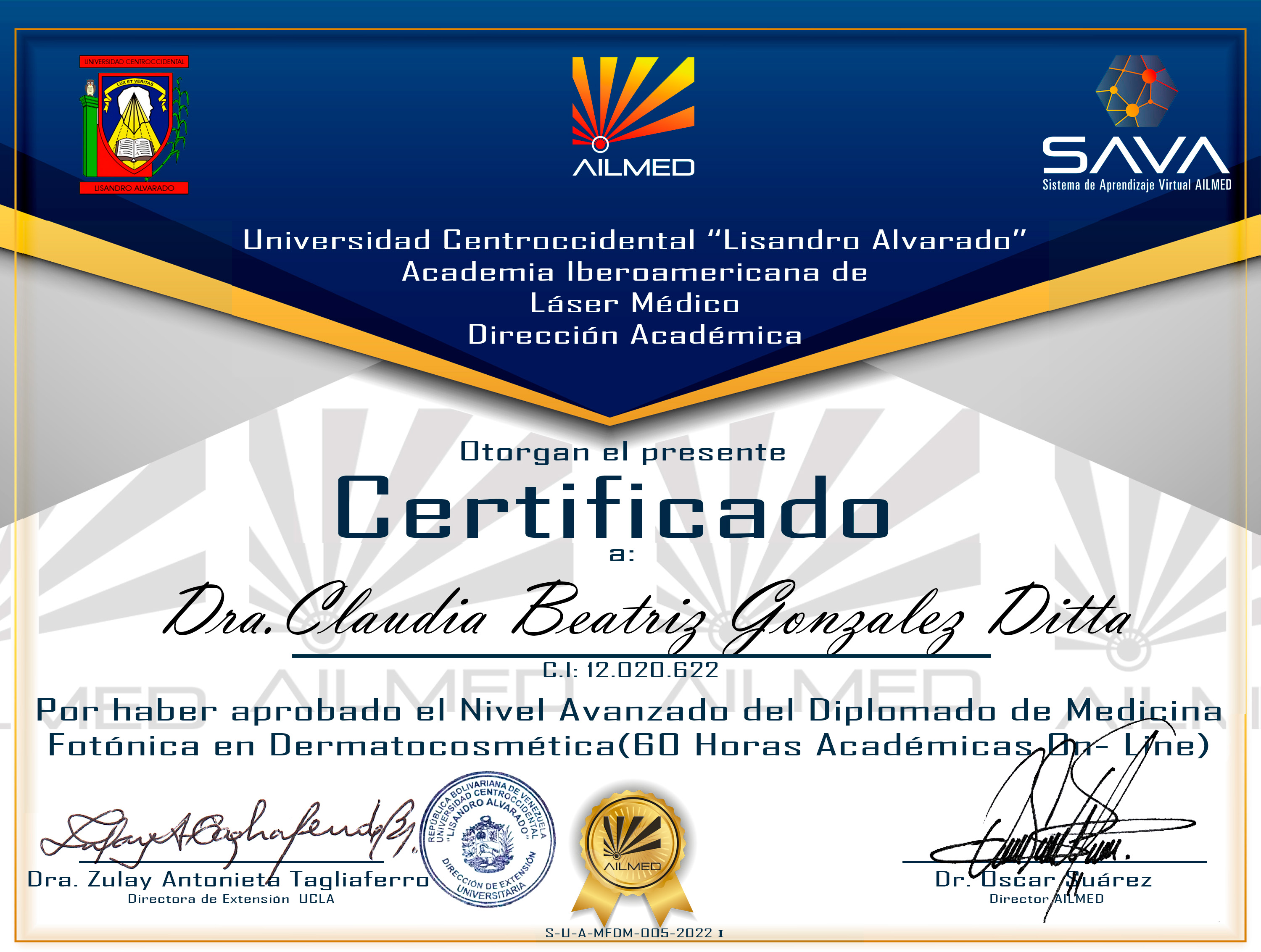 Cohorte IX- Nivel Básico- Diplomado de Medicina Fotónica en Dermatocosmética - Dra.Claudia Beatriz Gonzalez Ditta