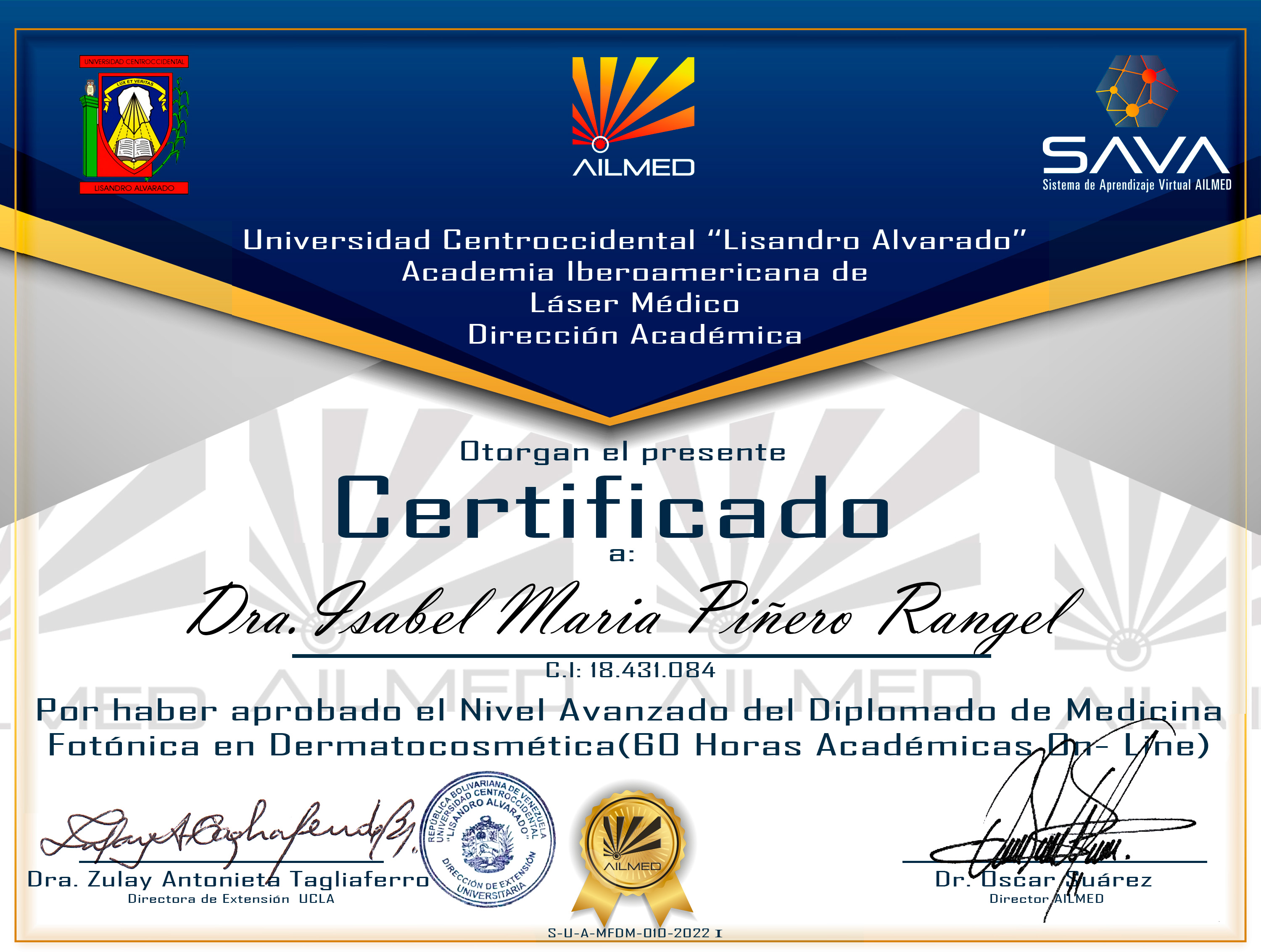 Cohorte VIII- Nivel Avanzado- Diplomado de Medicina Fotónica en Dermatocosmética - Dra.Marielidany Paola Rosales Urdaneta
